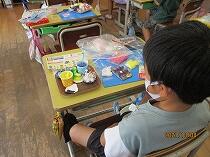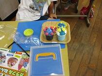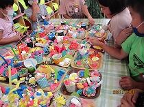 始めから絵の具を混ぜてその色の粘土を作る子どもや、基本の色の粘土を作って、その粘土同士を混ぜて新しい色の粘土を作るなど、その子なりに色粘土の作り方を工夫する姿が見られました。
