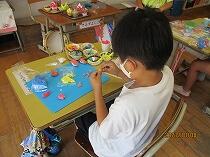 今の子どもたちは、イラストが上手いし、色使いが鮮やかです。もうすぐ、釘や金槌を本格的に使い始めます。