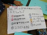 1年生や2年生にとって、こういう掲示物があるかないかで、興味・感心だけでなく、理解度も違うなあと感じています。1年生は、一生懸命発表していました。