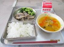 今日の給食は、「めひかりのからあげ」と添え野菜の「ブロッコリー」、「かぼちゃのみそしる」でした。