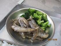 延岡の特産品の「めひかりのからあげ」は、からっと揚げられためひかりに、適当な塩味がついており、とても美味しかったです。添え野菜の「ブロッコリー」とも合っていました。