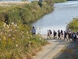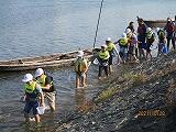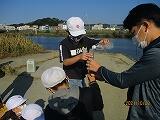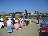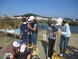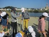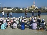 秋晴れの下、大瀬川に行きました。指導をしてくださる延岡河川道路事務所の人やリーバパル五ヶ瀬の人たちに挨拶をしてスタートしました。
