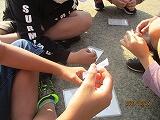 水質調査をするグループは、水の匂いを確認したり、どれくらい透明度があるか調べる実験をしたりしました。最後に薬品を使って水のきれいさを確認しました。