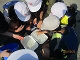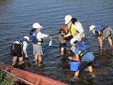 水質調査をするグループで、水生生物の調査をするグループに分かれて、それぞれ交互に実施しました。