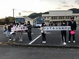 職員は手作りの横断幕を作っての見送りです。