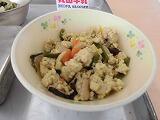 「いりどうふ」のふわふわ食感と「ちりめんあえ」のシャキシャキ食感を楽しみながらおいしくいただきました。
