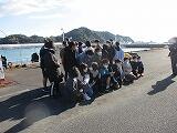 1枚目は、西階野球場での出発の様子です。2枚目以降は、一番始めの目的地である「マリンビューア南郷」での乗船体験です。天気がよく南郷のきれいな海の様子を見ながら船で移動しました。目的地に着くと、船底に下りて魚や珊瑚などを見ました。快晴だったので、水の透明度がよく青い色をした熱帯魚を見ることができました。鳶が餌付けをされていて、その勇姿に大興奮でした。