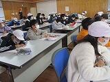 ※3年生は、冬休みの宿題について具体的な指導を受けたり、カードを使って2学期の反省をしたりしていました。