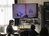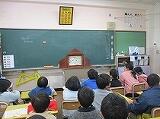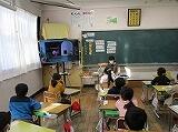 低学年は、大型テレビに映った絵本をしっかりと見ながら、読み聞かせを真剣に聞いていました。また、一つの学級では「紙しばい」をしていました。みんな大はしゃぎで「紙芝居」をとても楽しみにしていました。「紙しばい」が始まると教室がシーンとなって、みんな食い入るように「紙芝居」を見ていました。