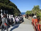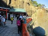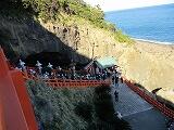 1日目3番目の、そして、午後の部の一番始めの目的地は「鵜戸神宮」でした。結構、歩いて鵜戸神宮へ、トンネルを抜け、参道をしばらく行くと、青い海に、あかね色の神社の建物が映えていました。