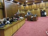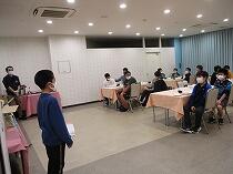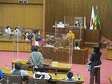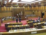 次に、道路を渡って県庁本館に移動しました。伝統を感じさせる風格のある県庁本館の建物が夕日に輝いていました。県庁の部屋を見せてもらった後、議会会場の見学をさせてもらいました。いろいろな席に座らせてもらったり、疑似答弁をさせってもらったり、普段ではできない貴重な体験をさせていただきました。