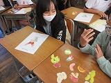 外国語専科の先生がALTと一緒にフルーツパフェをつくろう」というめあての授業をしました。始めに、教科書を使ってリスニングをしてから、先生のデモンストレーションを見ました。その後、ペアで必要な果物を英会話しながら、集めました。最後に、GIGAスクールのタブレットを使って、その集めた果物で作った自分のフルーツパフェの写真を撮りました。