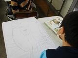 6年生は、木版画で下絵が終わって、彫刻刀を使って彫りに入っています。版画の題材は、延岡の名所です。