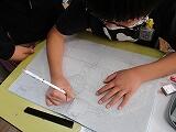 大きな模造紙に道路を描き、自分たちが調べてきた施設や自然などをまとめた付箋を貼っていき、延岡小の周りの様子について整理をしていました。また、自分たちで新聞にしたいと考え、中学年以上が作る新聞のように上手にまとめている班もありました。