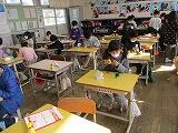 そして、最後は1年生です。先生から表彰をされたり、冬休みの宿題を具体的に確認したりしていました。また、お道具箱を整理して、きれいにしていました。
