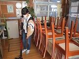 給食が終わったら、子どもたちはそれぞれのお世話になった教室を、一生懸命掃除をしました。そして、いよいよ下校です。下校する前に自分の一人一鉢のビオラのお世話をする子どもたちもいました。