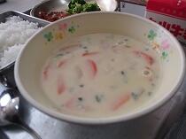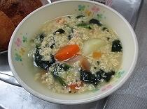 「ほうれんそうのふわふわスープ」は、野菜たっぷりでたまごがふわふわしておりソフトな感じで「あげパン」にも合っており、おいしかったです。