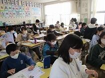 ※写真は4年生です。一つの学級では「ふゆやすみのくらし」を使って先生が冬休みの生活の仕方について話をしていました。もう一つの学級では、2学期のはじめに作って教室の後ろに掲示してある自分のめあてを確認しながら、2学期の反省をしていました。