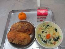 「あげパン」、「ほうれんそうのふわふわスープ」とデザートの「みかん」でした。