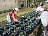 給食が終わったら、子どもたちはそれぞれのお世話になった教室を、一生懸命掃除をしました。そして、いよいよ下校です。下校する前に自分の一人一鉢のビオラのお世話をする子どもたちもいました。