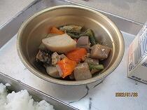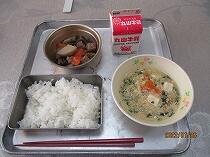 おかずの一つは、宮崎名物の一つて定番の「チキンなんばん」、これには添え野菜として、ゆでキャベツがたっぷり添えてありました。もう一つのメニューは「ふゆやさいのみそしる」でした。その名のとおりたくさんの種類の冬野菜が入っていました。ビタミンいっぱい、冬の寒さを乗り切れそうな6年生の作った献立でした。