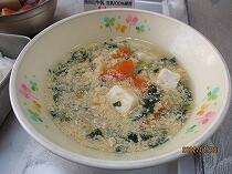 「わかめスープ」は、わかめだけでなく、写真にあるようにしっかりと具が入っていて、さっぱりしているけれど栄養満点でした。デザートもあり、ボリュームのあるメニューでした。