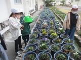 朝から、3年生の子どもたちが一人一鉢のビオラのお世話をしていました。まだ、寒さが厳しいので、そんなに大きくはなっていませんが、これから気温が上がる日が増えると急に成長し始めます。