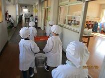 今、新型コロナウイルス感染症のため給食の準備は、それぞれの学級でしています。1年生の給食は、6年生がお手伝いをしてくれていました。