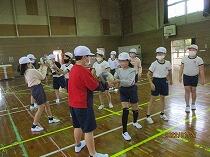 そんな中ですが、1年生が運動場で元気よく縄跳びをしていました。その後、サッカーボールを使って、「ボールけりあそび」の運動をしました。