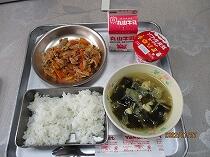 今日の給食は、「キムタクごはん」と「わかめスープ」、「ヨーグルト」でした。