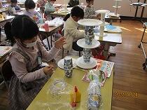 みんなすごいアイデアを出して、いろいろな形を工夫していました。また、回転したときに、きれいな模様が見えるように周りもいろいろ飾りをつけていました。
