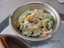 今日の給食は、6年生のリクエストメニューでした。「ビーフシチュー」と「チキンサラダ」でした。