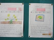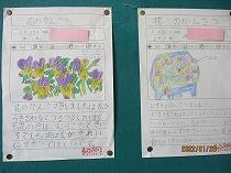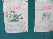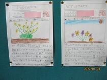 この前、生活科で一人一鉢の観察をして、カードに記録をしているところをご紹介しました。完成したカードはそれぞれ、教室に掲示してありますが、代表の子どもたちのカードが2年生の廊下掲示板に掲示されていたので、ご紹介します。