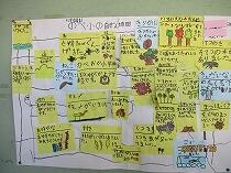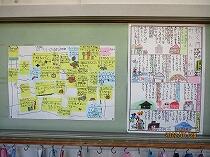 生活科の一つ前の単元の「もっと知りたい、たんけんたい」で作製した、地図や新聞が完成していました。