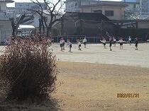 2時間目に、1年生が体育の授業を運動場でしていました。朝に比べると、少し気温は上がっていますが、10:00前の運動場は、空気がまだまだ冷たいです。