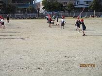 そんな中ですが、1年生が運動場で元気よく縄跳びをしていました。その後、サッカーボールを使って、「ボールけりあそび」の運動をしました。