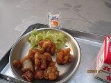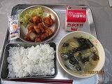 おかずの一つは、宮崎名物の一つて定番の「チキンなんばん」、これには添え野菜として、ゆでキャベツがたっぷり添えてありました。もう一つのメニューは「ふゆやさいのみそしる」でした。その名のとおりたくさんの種類の冬野菜が入っていました。ビタミンいっぱい、冬の寒さを乗り切れそうな6年生の作った献立でした。