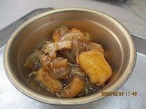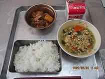 給食が運ばれてくると、食欲をそそるとてもいい香りがしてきました。それは、「チンゲンサイのたまごみそしる」の香りでした。食べてみるといろいろな野菜と卵からとてもいい「だし」が出ていてとてもおいしかったです。