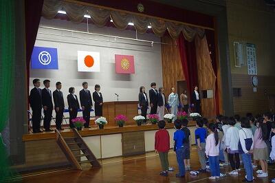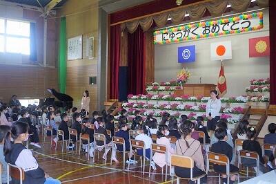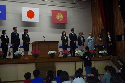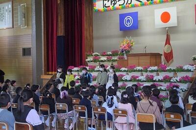 また、久しぶりに来賓の方(学校運営協議会委員)にご参列いただいたり、在校生の代表として6年生も参加や歓迎の言葉の発表をしたりしました。