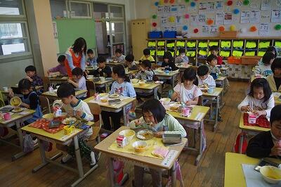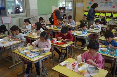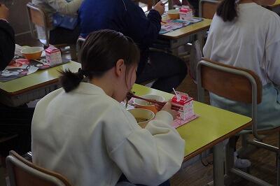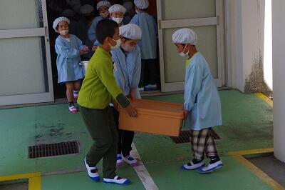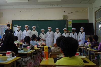 6年生が配膳してくれた給食を、みんなおいしそうに食べていました。