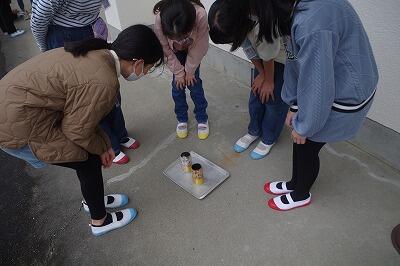 令和5年4月12日(水)、6年生が理科の導入単元「ものが燃えるしくみ」の実験をしていました。