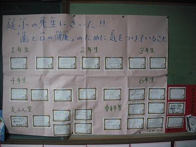 また、北校舎2階の「保健コーナー」には、延岡小の先生達が、はみがきの時に気を付けていることや普段から気を付けていることが貼られています。児童の皆さんにも真似してほしいです。