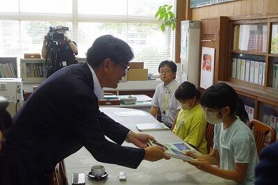ちなみに、手交してくださった顕彰会副会長(旭化成延岡支社延岡総務部長)の米田昌樹様は、本校の卒業生(S55年卒)だそうです。終わってから、懐かしく校内を回っておられました・・・。