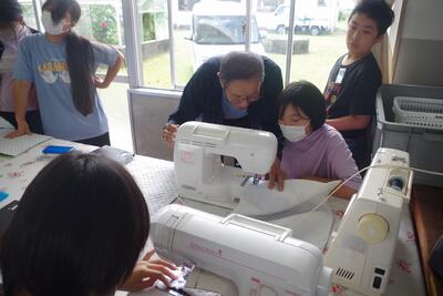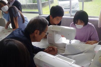 令和5年10月3日(火)、6の2がミシンを使ってトートバッグを作っていました。ミシン修理店トダカの戸髙さんもミシン利用のサポートに入ってくださいました。有り難いです。m(_ _)m