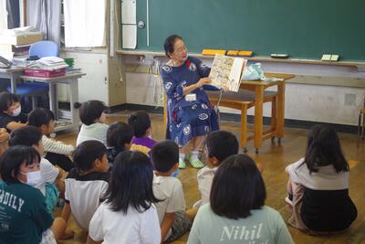 令和5年10月4日(水)、今日も読み聞かせをしていただきました。延岡小では、読み聞かせボランティアが入らない学級では、3枚目の写真のように読み聞かせの動画を視聴しています。