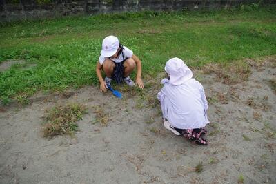 令和5年10月10日(火)、2年生が春に植えたサツマイモが大きくなっており、みんなで一生懸命ほりあげていました。幼虫もさがしていたけど・・・。