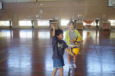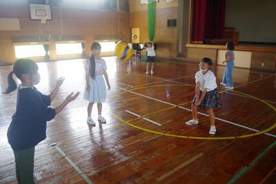 令和5年10月6日(金)、女子バレー部の子達が、バレー未経験の子にバレーを教える教室を昼休みに開催していました。アンダーパスやオーバーパス、サーブなどを教えていましたよ。