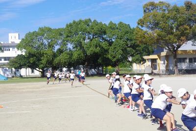 令和5年10月15日(日)、晴天の下、第134回の運動会を行いました。本年度は、観客制限をなくし、団技も復活して行いました。9月に入っても、暑さ指数が高い日が続いたり、インフルエンザ等が流行ったりして、なかなか練習日程がとれない中、本番では子どもたちが練習の成果を十二分に発揮して良い運動会になったと思います。
