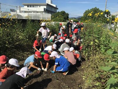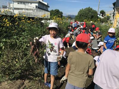 収穫したサツマイモは、10月17日の給食「大豆と小魚の揚げ煮」の食材として活用されます。2年生、ありがとう。