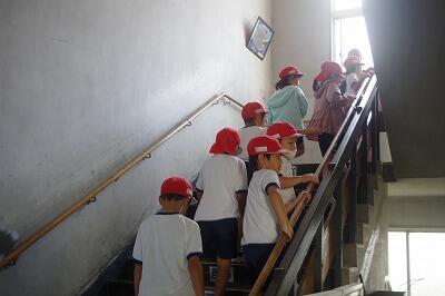 上履きで、外に逃げてそのまま校舎に上がって来ましたので、後から6年生がボランティアで掃除してくれていました。♡